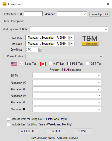 - Include Items for Equipment Terms (Weekly and Monthly) -