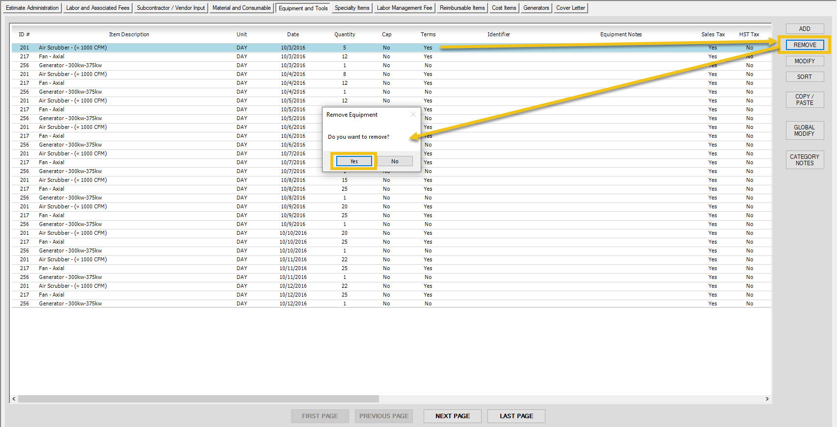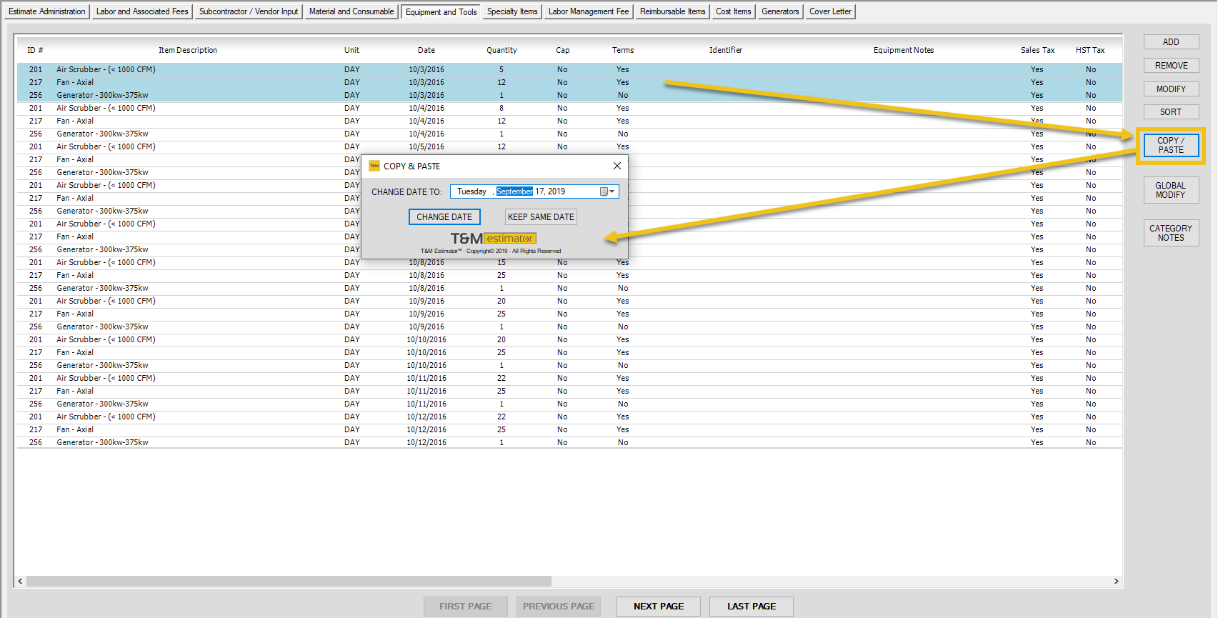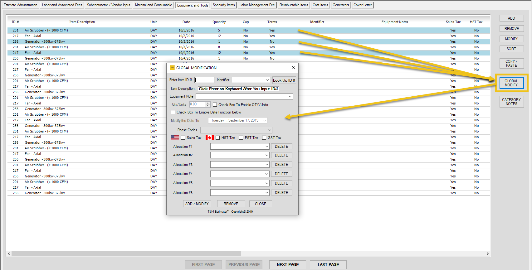 Equipment and Tools - Modify an Entry