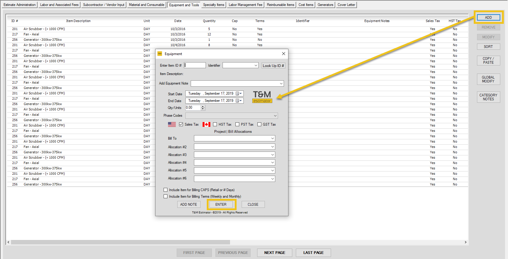 Equipment and Tools - Add