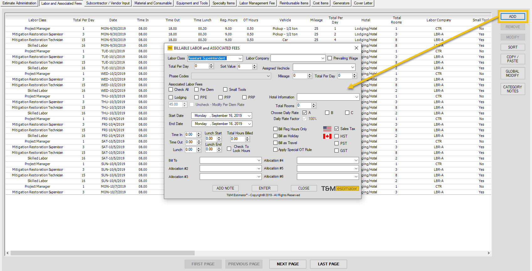 - To Modify an Existing Labor Entry - Click On the Labor Class you