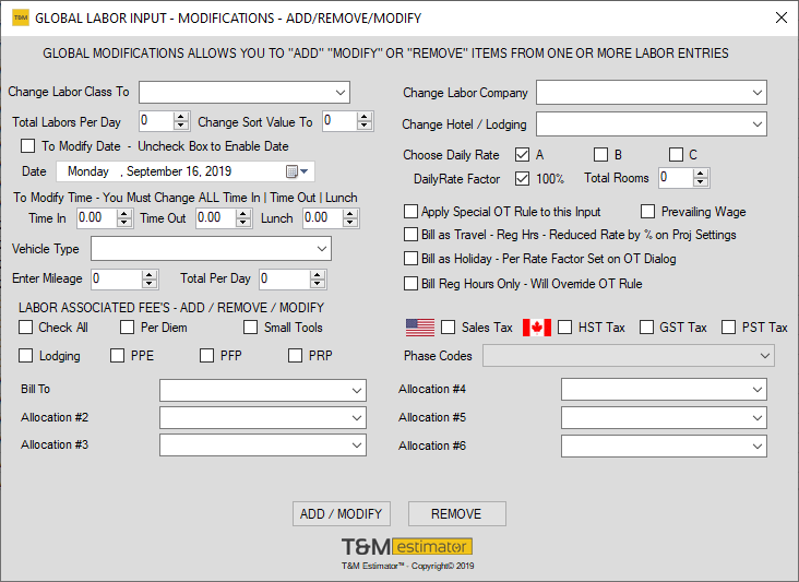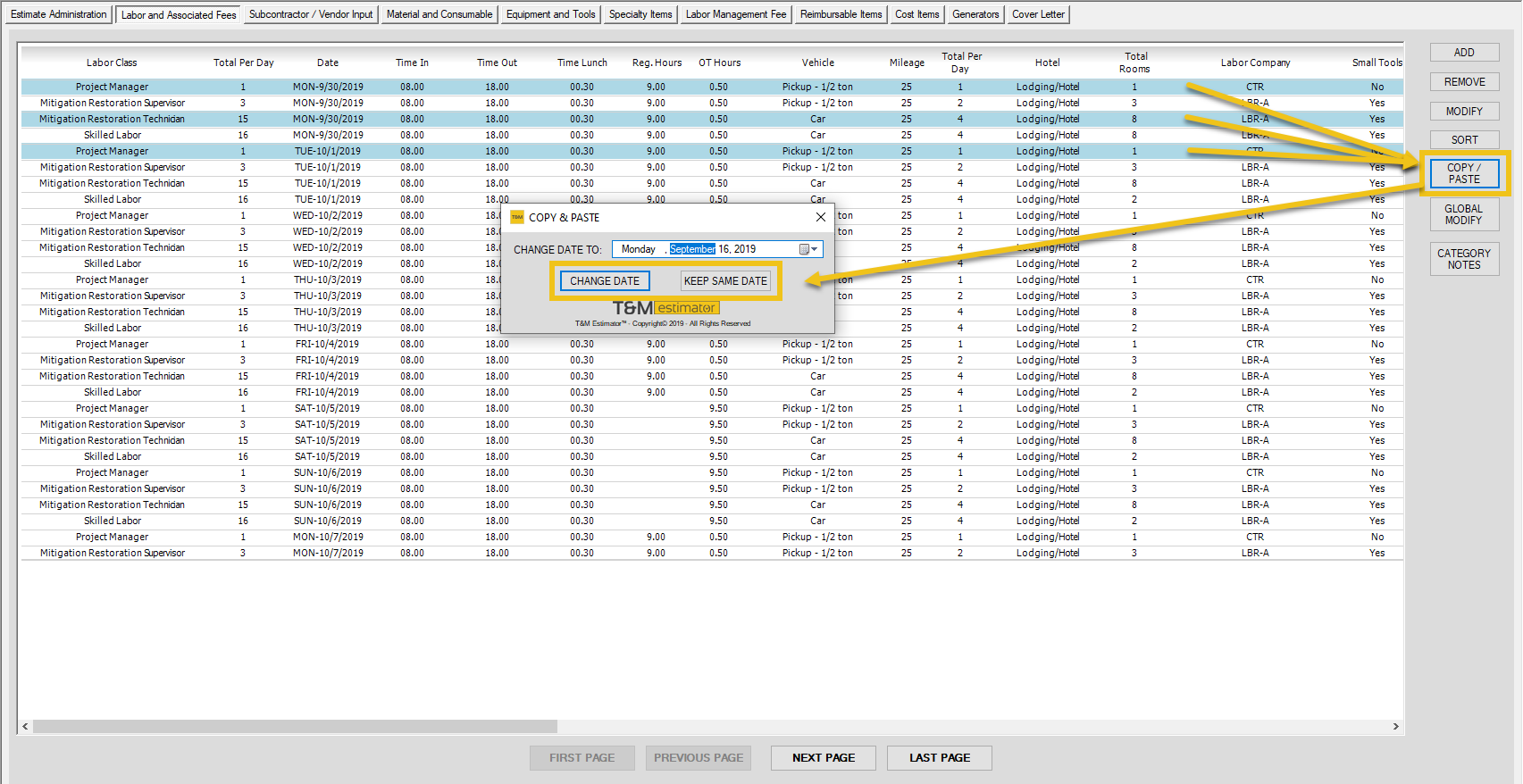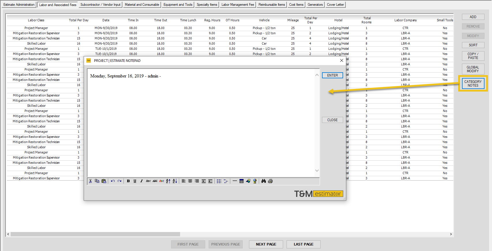 - Click the button REMOVE - A message will appear to confirm remove of the labor item
