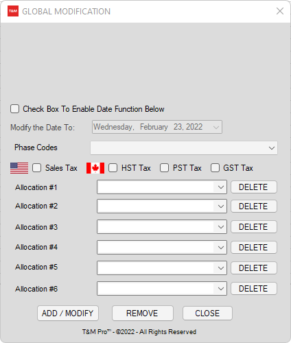 Labor Management Fee - Global Modification