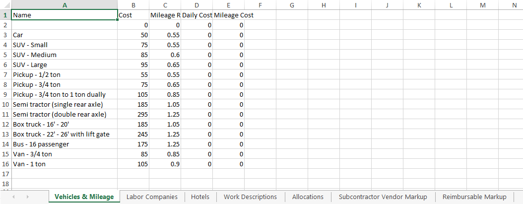 Export the Labor Details - This will export over to Excel® and have all the required headers