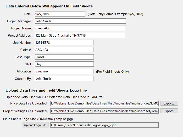 To Open Project Settings Dialog: Click on the 'Estimate Data Files' menu to expand Click on 'Project Settings File' as shown below ©2025 T&M Pro Suite www.timeandmaterial.com - Setting the Standard for T&M Billing