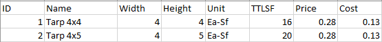 - TTLSF - Enter Total Square Feet: Width x Height = TTLSF