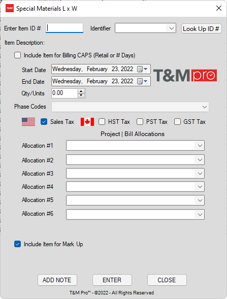 Enter ID #- Enter ID # from Field Document and then Click on your TAB key and Item will appear next to Item Description (see image below)